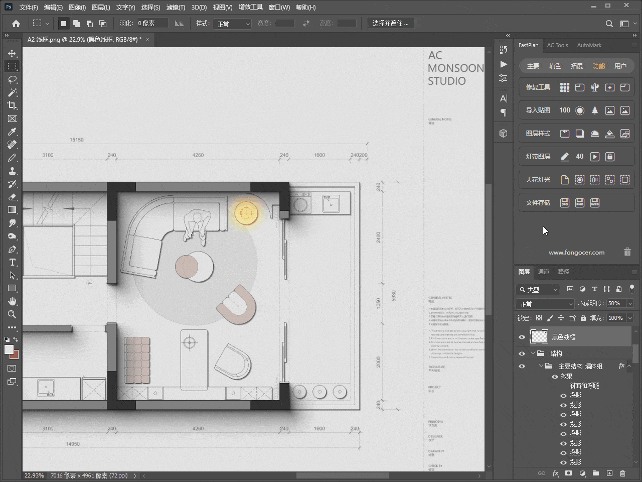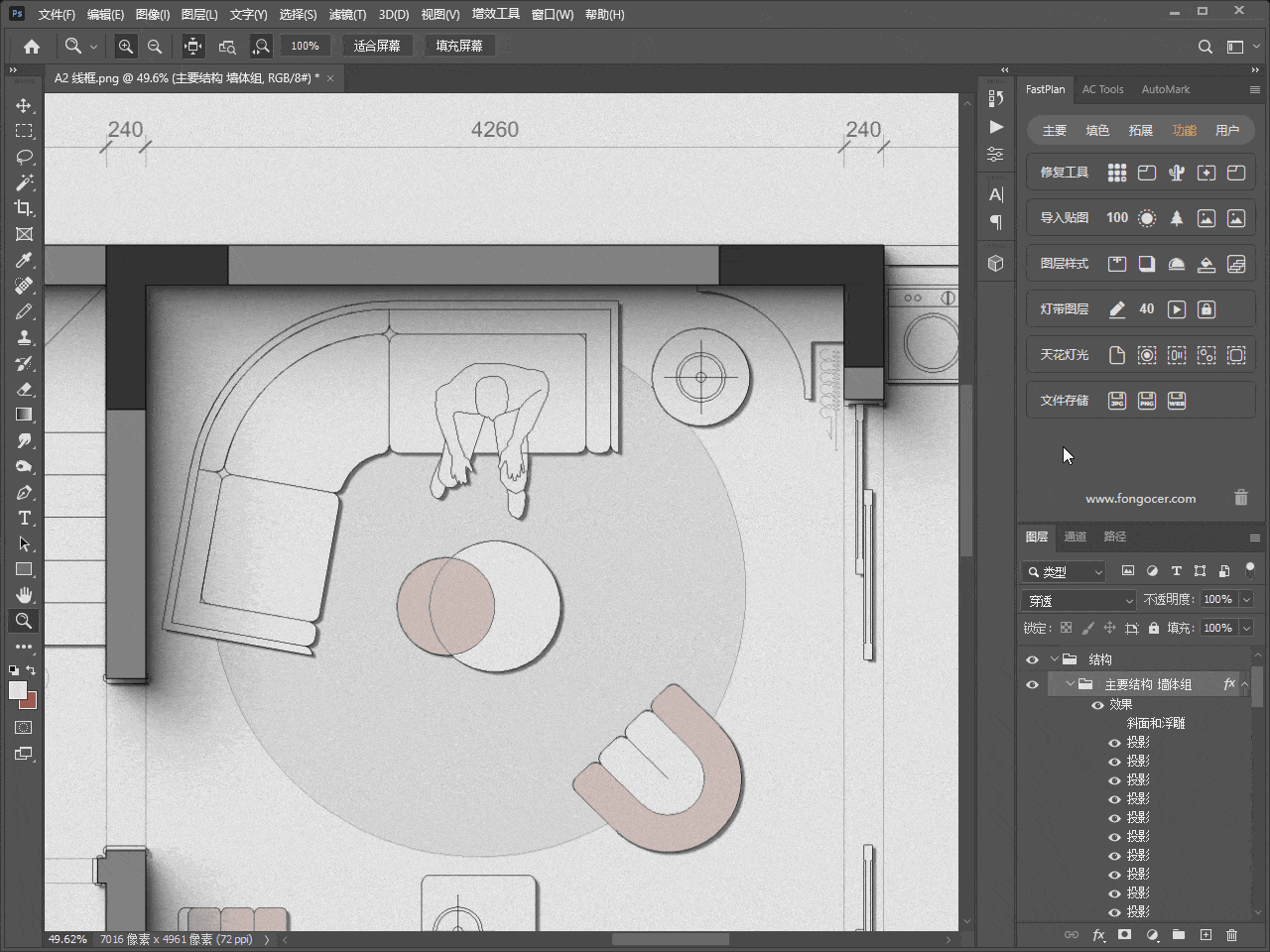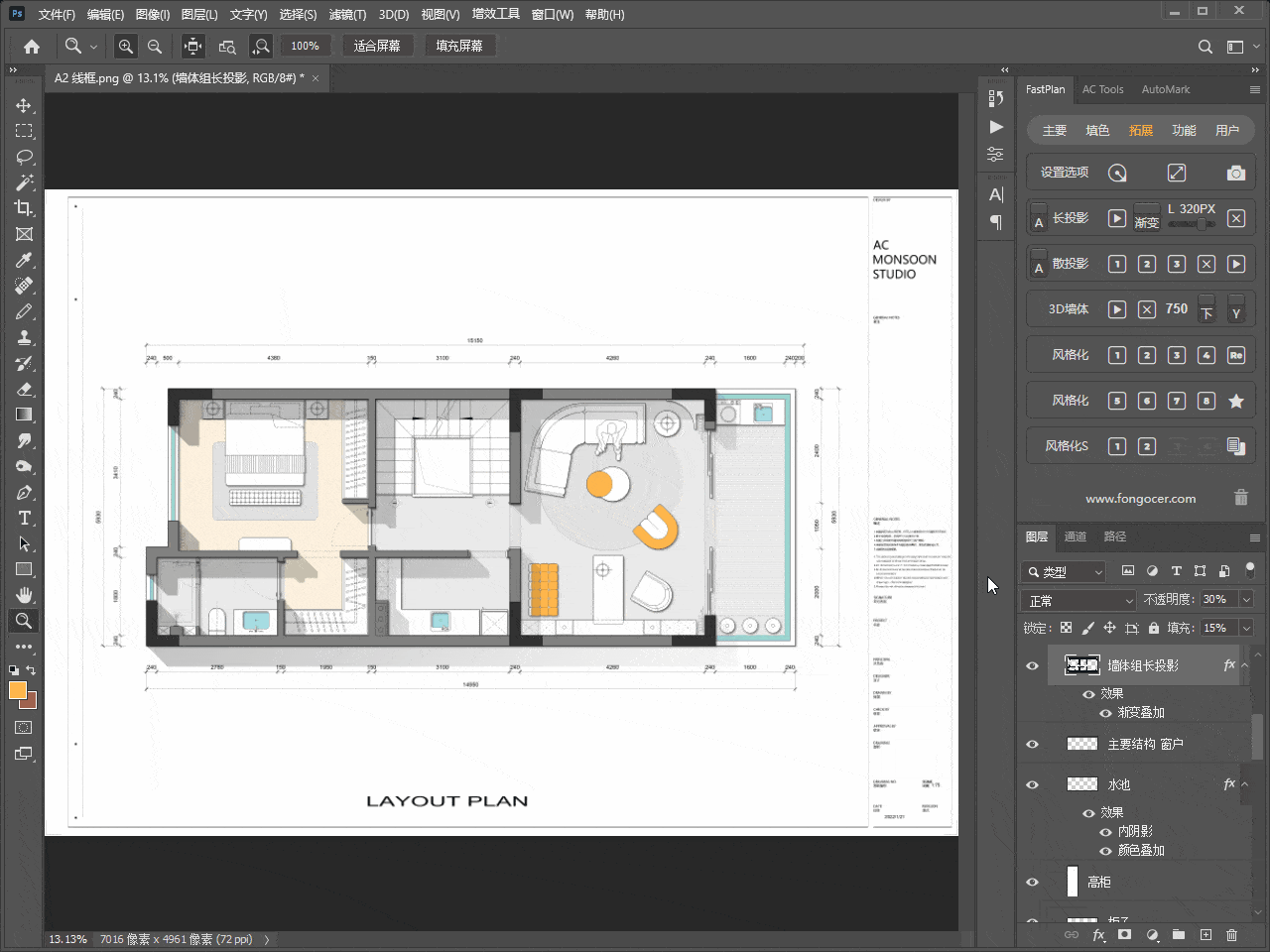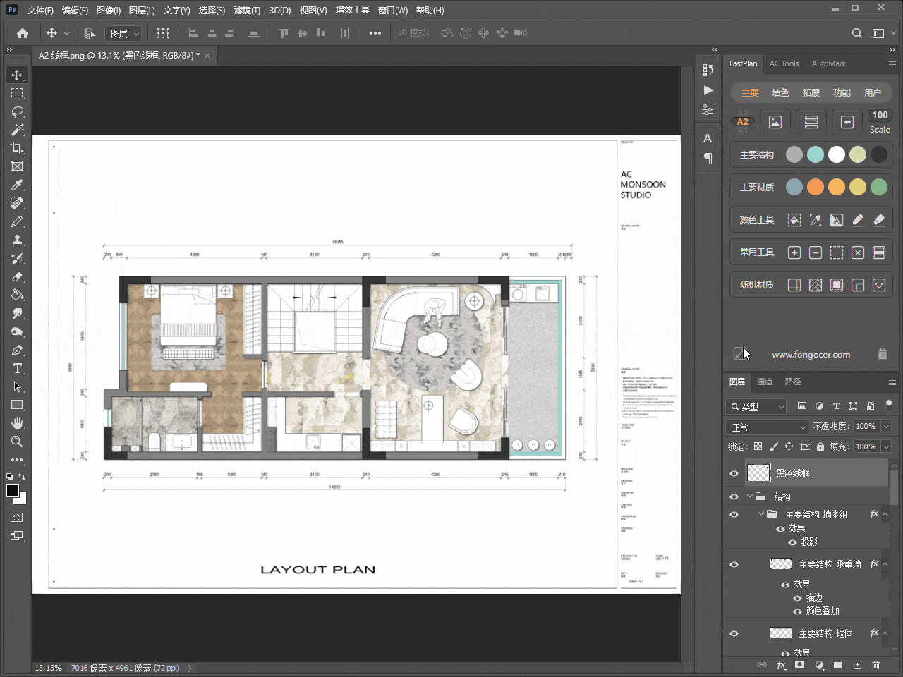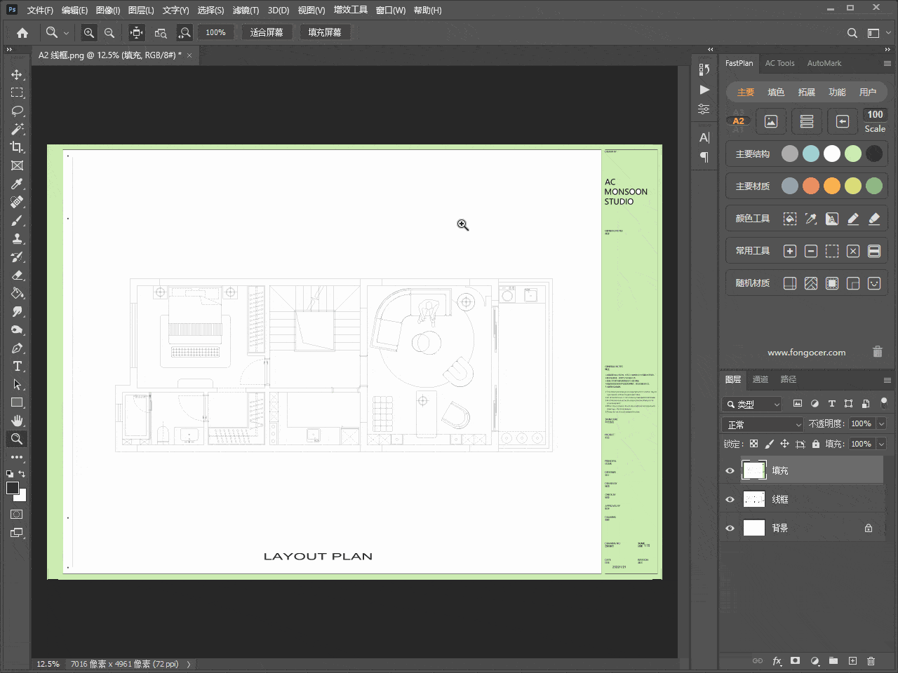 Fastplan是运作在PhotoShop平台的一个快速制作彩平的插件。